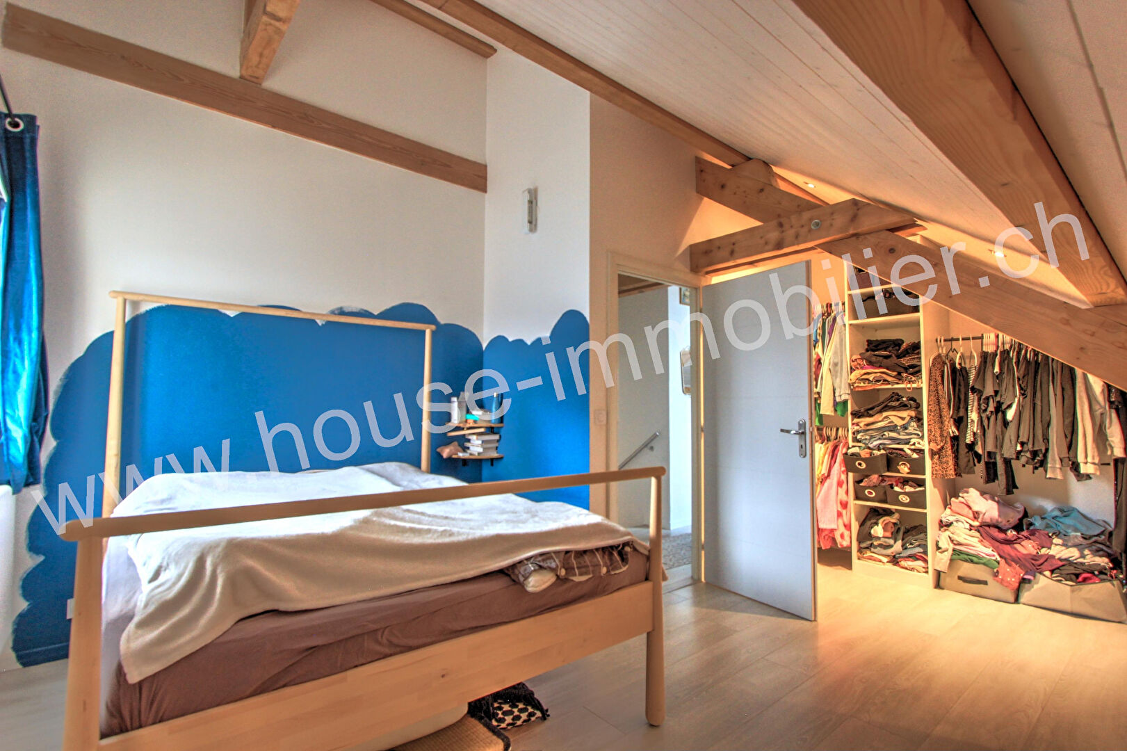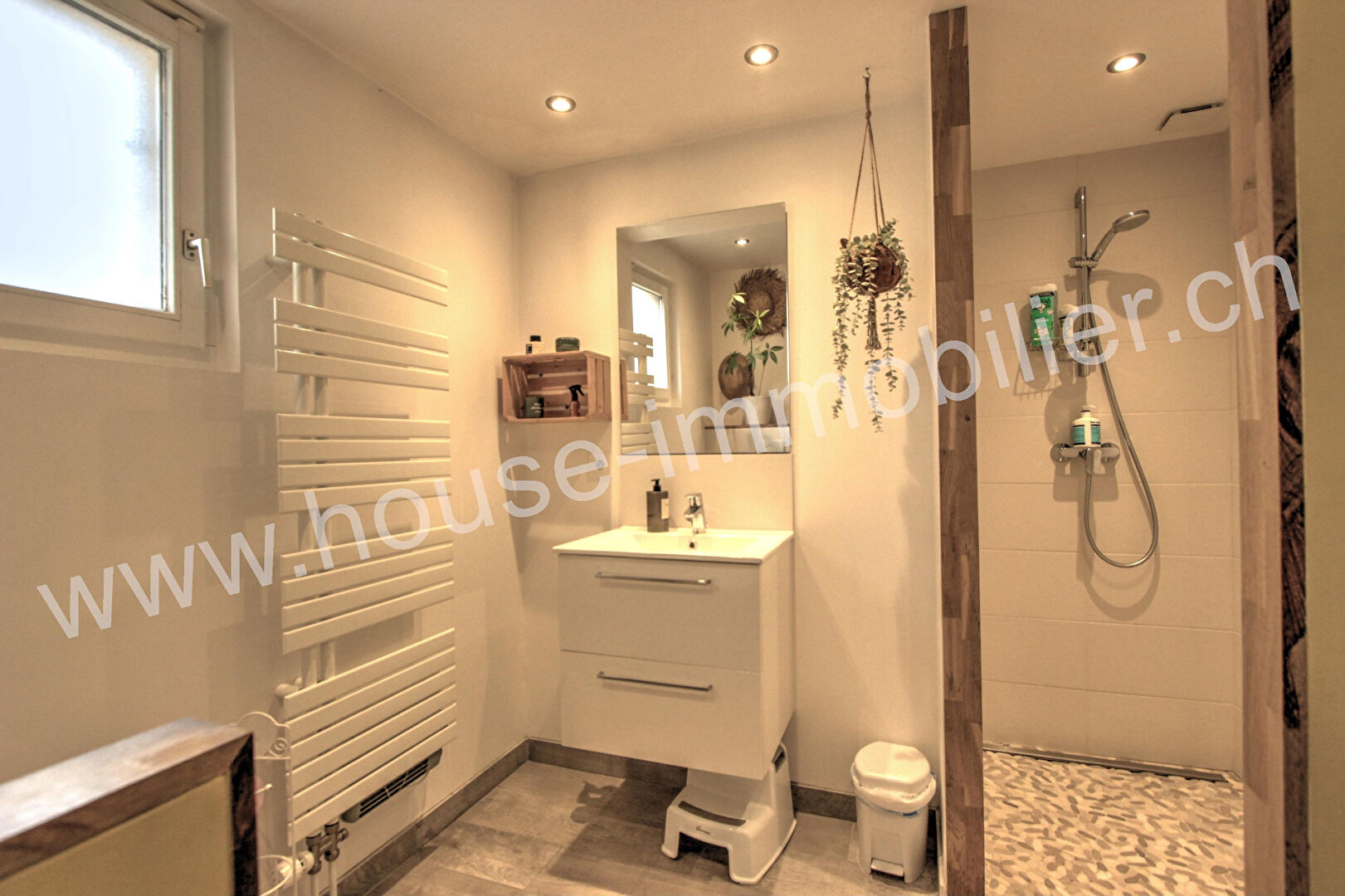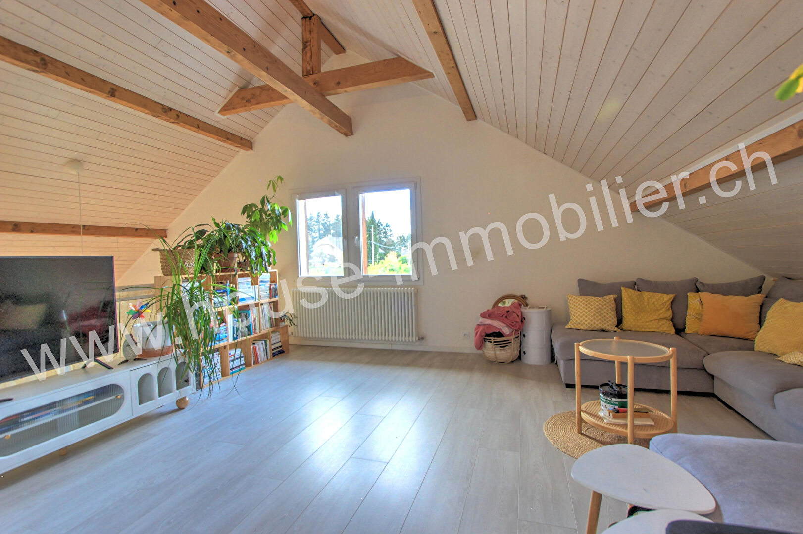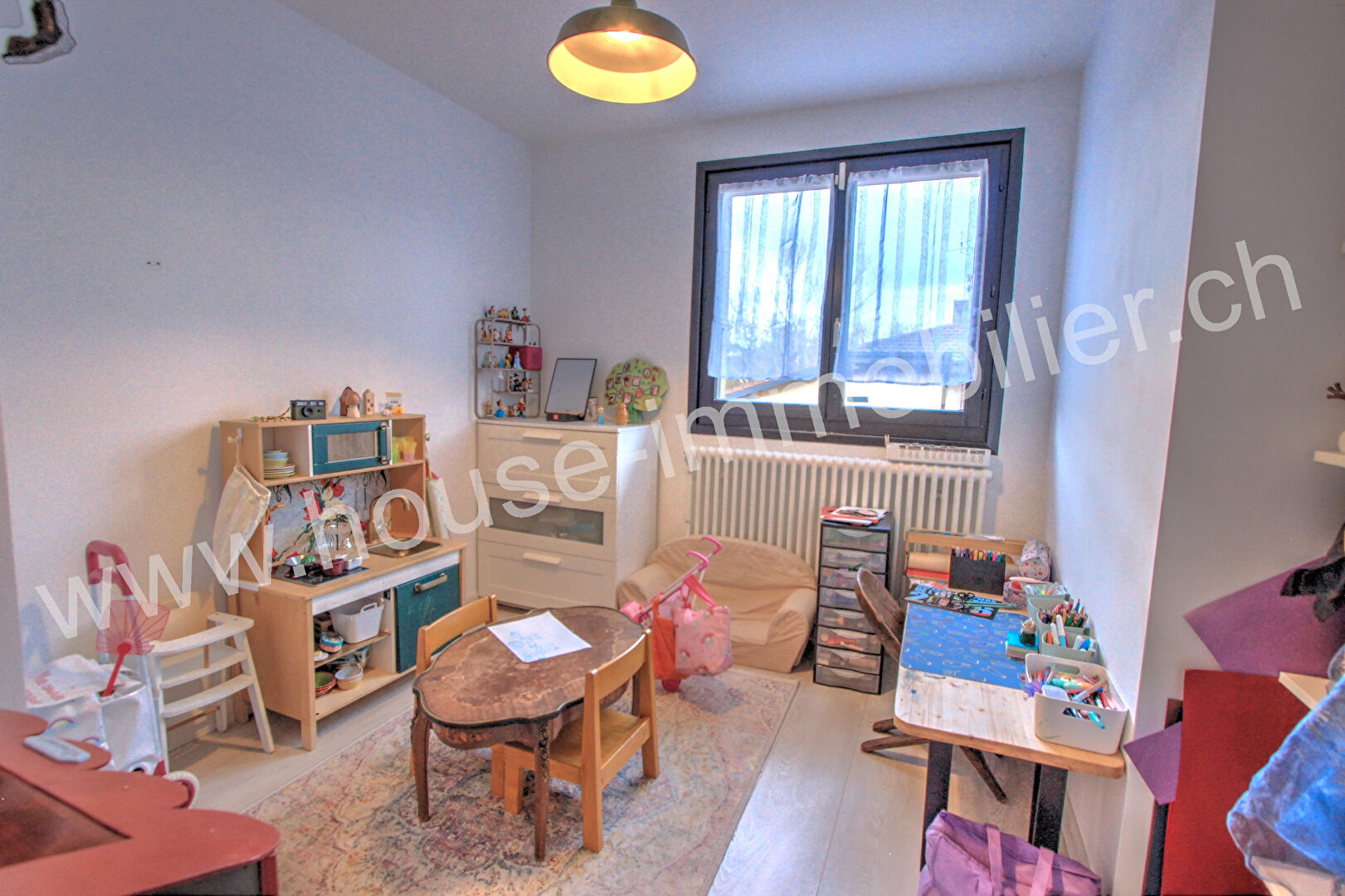A l’étage : mezzanine de 23 m² (actuellement salle de jeux), deux chambres, salle d’eau avec WC.